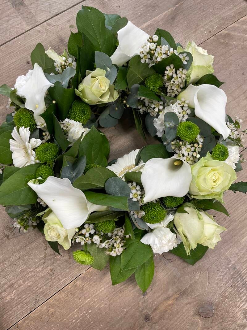 De rouwstukken kunnen altijd telefonische of in de winkel besteld worden naar gelang de kleur, de maat en de prijs.